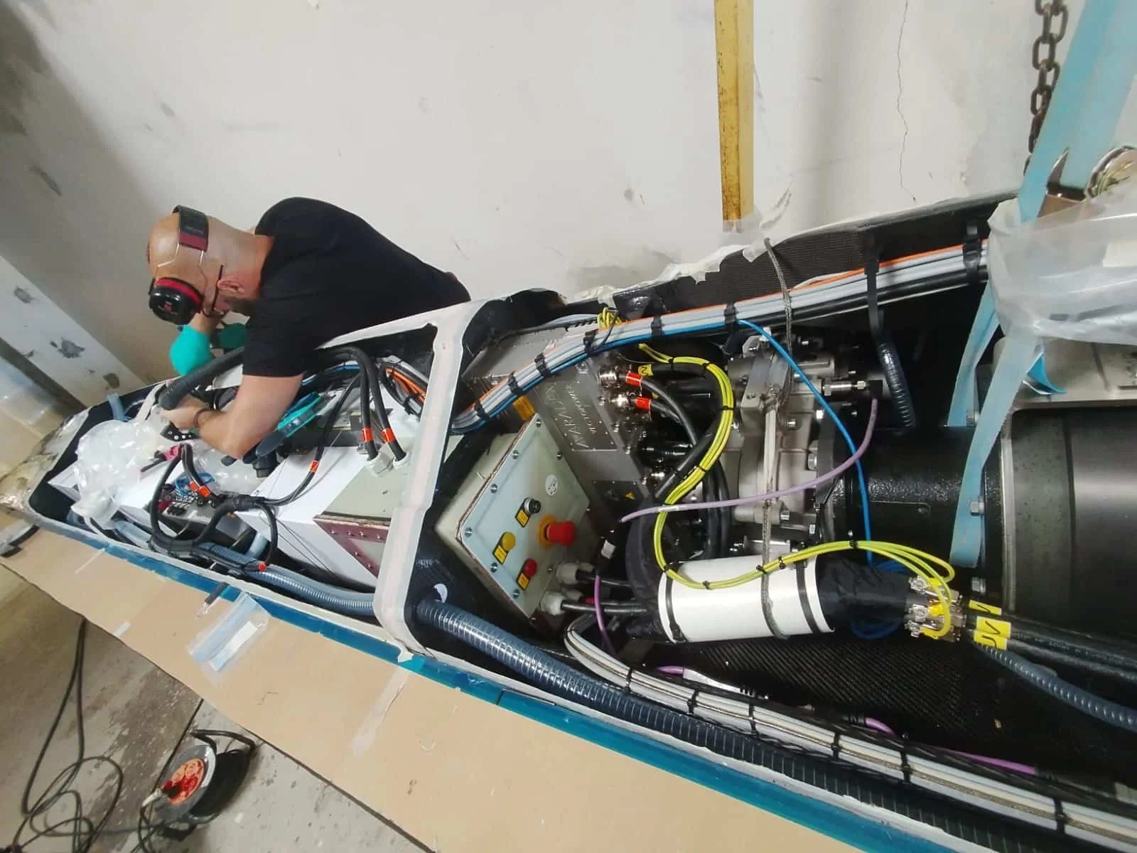 The prototype is powered by a 130kW 384V motor, assembled inside the hull.